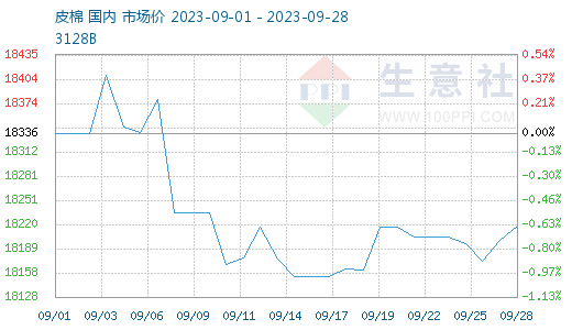 据生意社商品行情分析系统,9月3128B级皮棉现货价格最高在月初的18410元/吨,之后行情震荡整理,截至9月28日皮棉现货价格在18219元/吨,较月初下跌0.64%;较年初上涨21.08%。