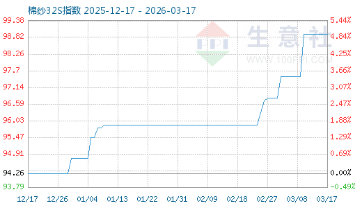 1月13日生意社棉纱32S指数为95.88