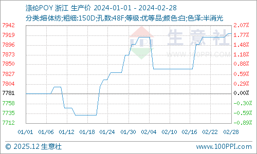 2月28日,国内涤纶长丝市场价格暂稳,江浙主流涤纶长丝工厂POY(150D/48F)报价在7700-8000元/吨,涤纶DTY(150D/48F低弹)报价在9050-9300元/吨,涤纶FDY(150D/96F)报价在8450-8700元/吨。终端目前表现一般,下游补库仍谨慎。